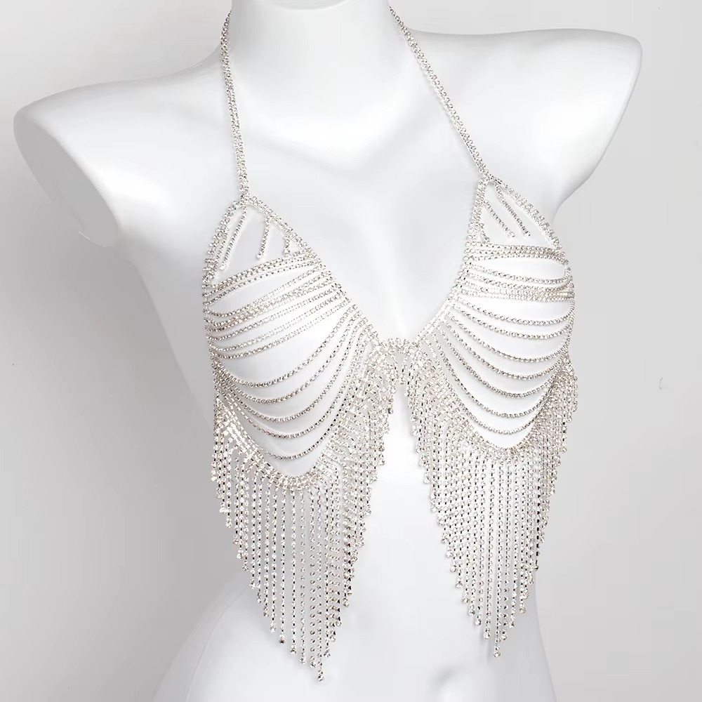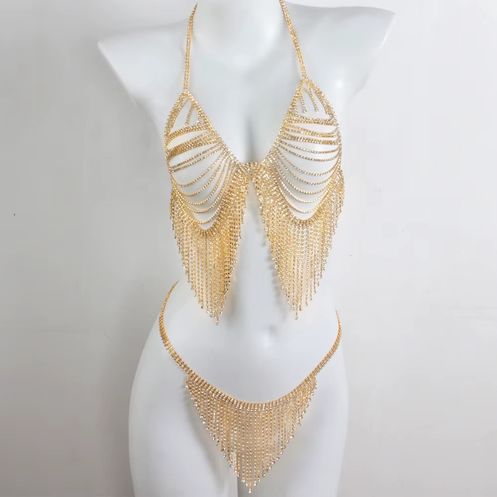Dodaj wyjątkowej elegancji swojej stylizacji dzięki ekskluzywnemu kompletowi Aura Line, ozdobionemu efektownymi kryształkami!. Wykonany z wysokiej jakości, transparentnej tkaniny, z misternie ułożonymi sznurami lśniących kryształów, które tworzą spektakularny efekt zarówno na dekolcie, jak i poniżej linii biustu. Model idealnie podkreśla sylwetkę, stanowiąc wyjątkowy wybór na specjalne okazje, sesje zdjęciowe czy wielkie wyjścia.