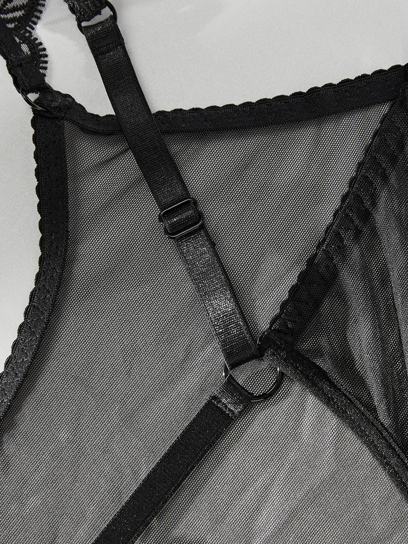 Przenieś się w świat uwodzicielskiego stylu z tym wyjątkowym modelem. Połączenie delikatnego, prześwitującego materiału z eleganckimi koronkowymi akcentami tworzy bieliznę, która emanuje zmysłowością i seksapilem. Regulowane paski zapewniają perfekcyjne dopasowanie, podkreślając Twoje atuty.