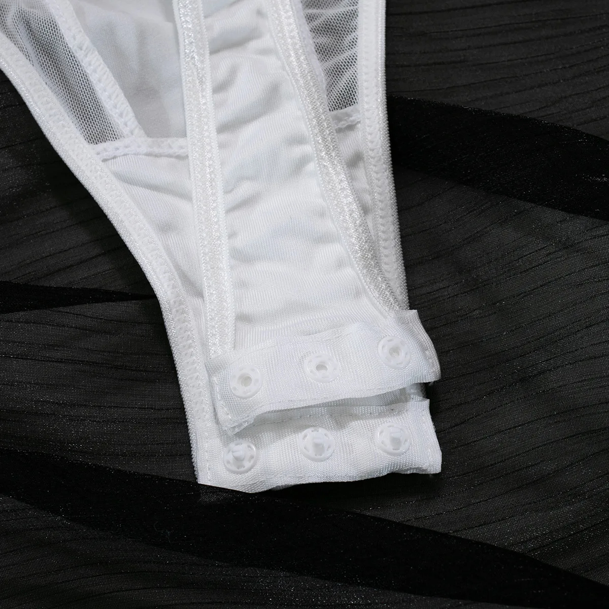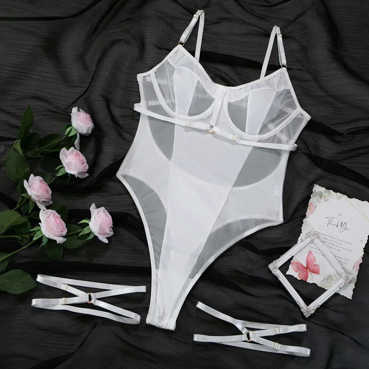 Oto elegancki i zmysłowy element garderoby dla kobiet. Body wykonane jest z delikatnego materiału siateczkowego, który nadaje mu subtelny, kobiecy wygląd. Ramiączka są regulowane, co umożliwia dostosowanie ich długości do preferencji noszącej. Styl dekoltu dodaje elegancji i subtelności, jednocześnie podkreślając delikatną linie. Plecy są odsłonięte, co nadaje temu body pewien element seksapilu i atrakcyjności, a jednocześnie to idealna opcja dla kobiet poszukujących subtelnej i wyrazistej bielizny. Może być noszone samodzielnie lub w połączeniu z innymi elementami garderoby, tworząc stylowy i niebanalny look.