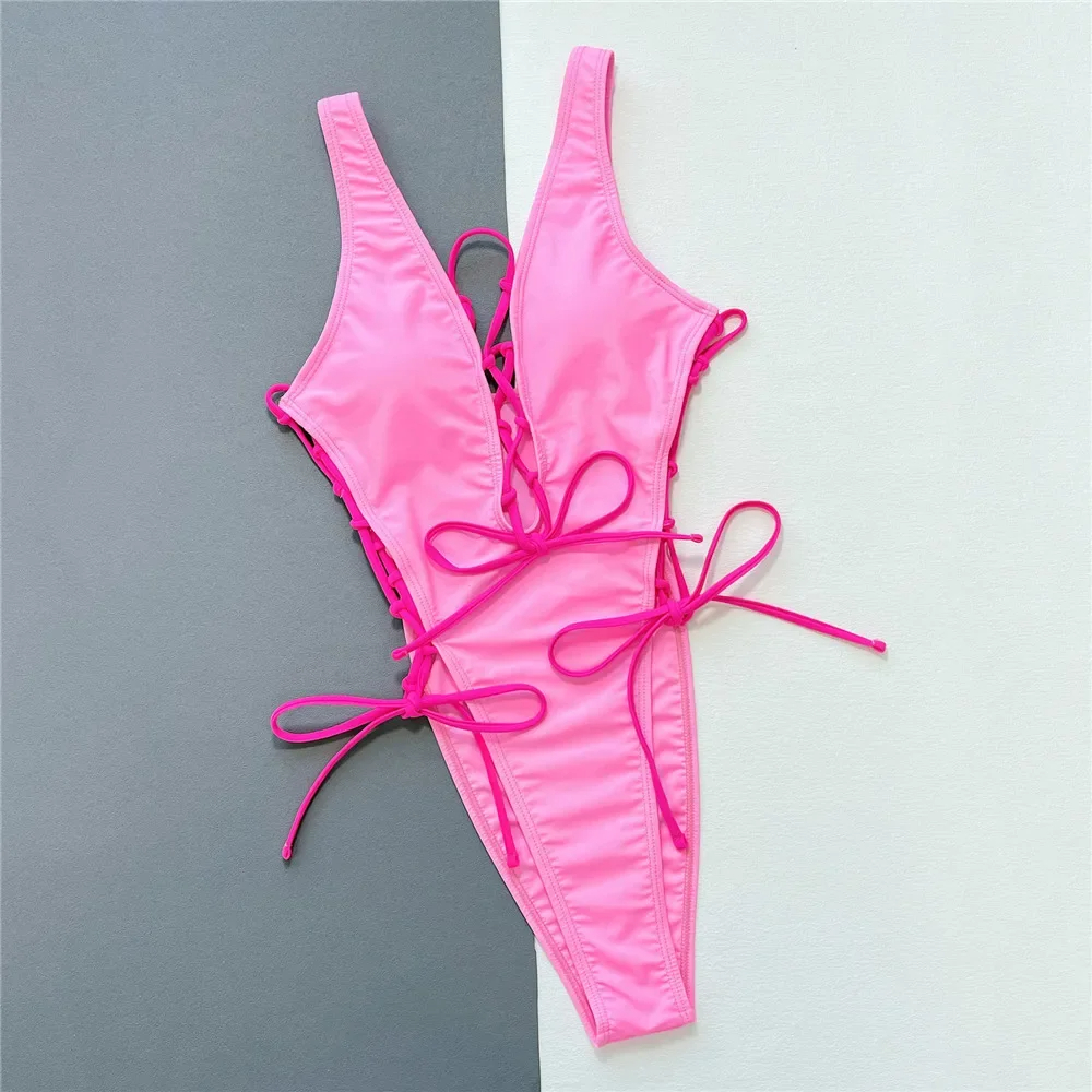 Kostium w najmodniejszym kolorze sezonu, który łączy ze sobą najnowsze trendy z niepowtarzalnym wyglądem. Ten strój kąpielowy ma głęboki dekolt w literkę V ozdobiony pięknym, regulowanym wiązaniem dodając odrobinę uroku, ale również seksapilu. Konstrukcja kostiumu optycznie wydłuża nogi. Miękkość wykonania jest idealna do wylegiwania się na słońcu lub zanurzania się w wodzie. Niezależnie od tego, czy jesteś na wakacjach, czy cieszysz się dniem na plaży, ten strój kąpielowy z pewnością odwróci głowy.