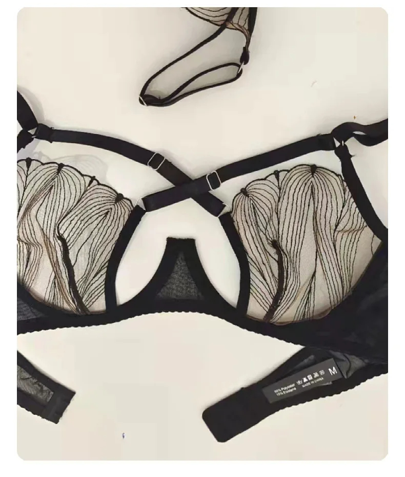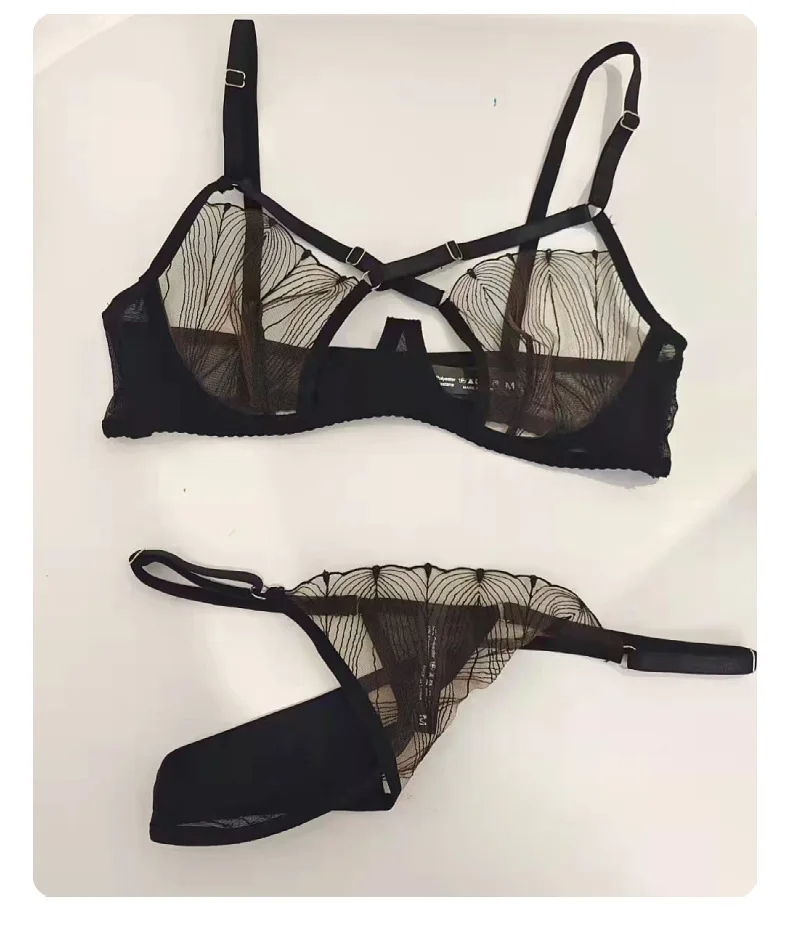 Eegancki i absolutnie seksowny przezroczysty zestaw bielizny. Biustonosz oraz majtki w pełni regulowane. Wyjątkowy fason uzupełni look każdej kobiety, która chce poczuć się pięknie i seksownie.